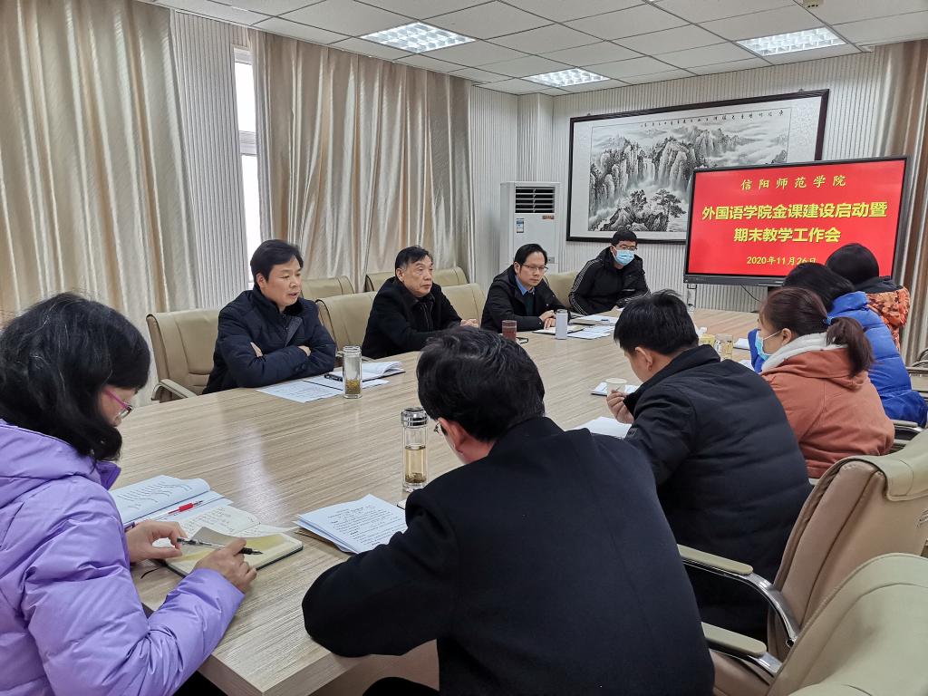 11月26日下午,beat365亚洲体育官方网站在人文楼五楼小会议室召开“金课”建设启动暨期末教学工作会议,党委书记周学红、经理蔡满园、副经理姚光金、各系主任(副主任)、第二外语教研室主任、教学督导、教学秘书及教务员等参加了会议。会议由姚光金主持。