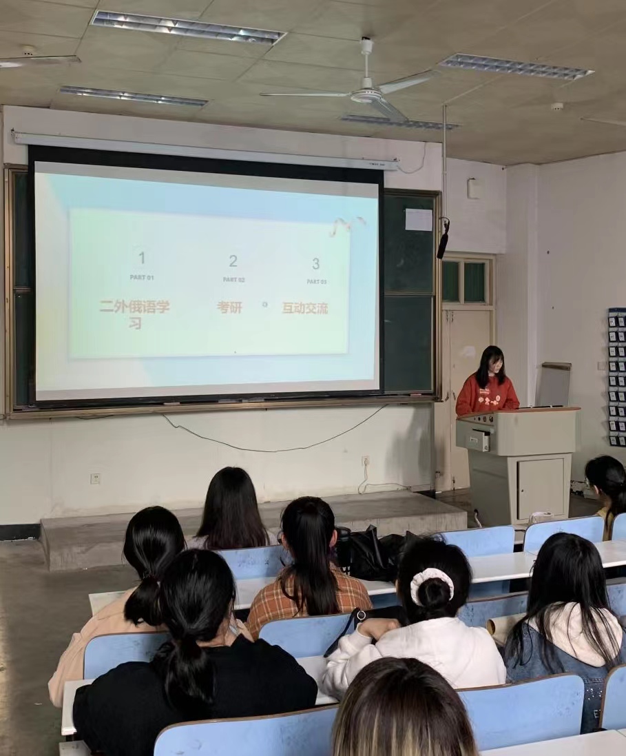 为了进一步加强同学们对外语专业研究生入学考试的认识,提高同学们的考研热情,明确考研目标,掌握相关考研技巧以及了解前沿的就业形势,3月15日下午15:00,由beat365亚洲体育官方网站第二外语教研室陈欣老师组织的“二外考研经验分享会”在人文楼110教室进行。