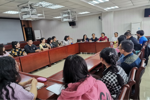 9月29日下午,公司英语系在人文楼六楼会议室召开《综合英语》课程师生座谈会,英语系全体教师、教务办相关同志和2019级英语翻译专业员工代表参会。会议由系主任余运伟主持。