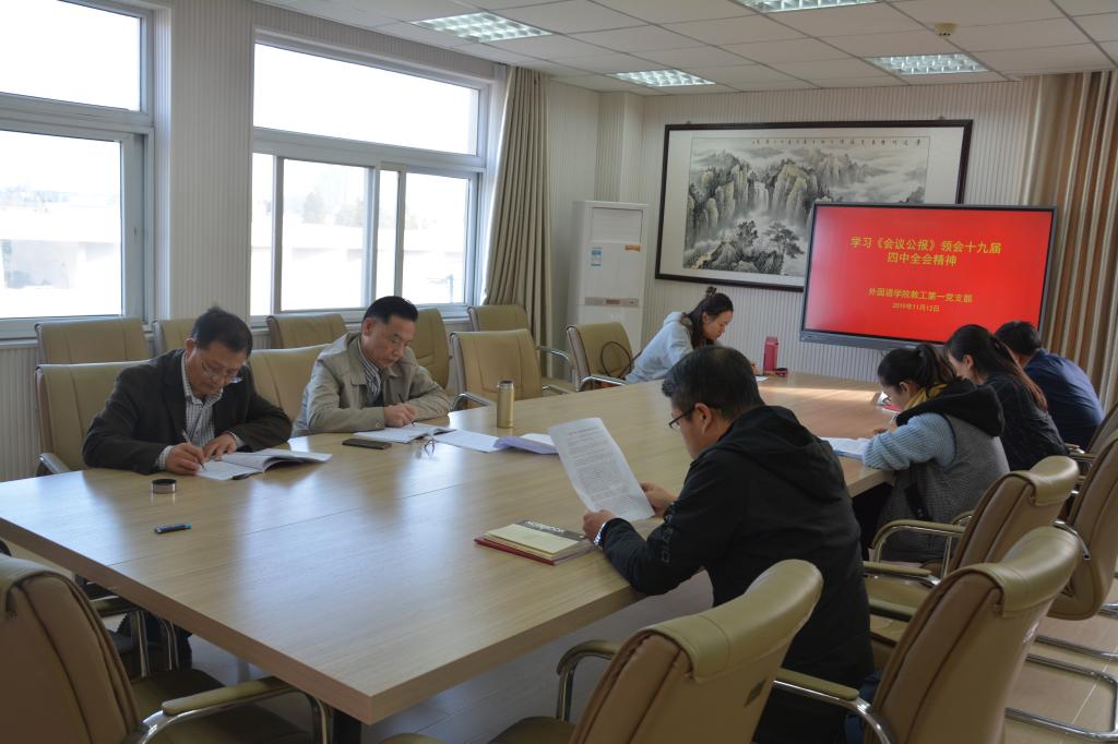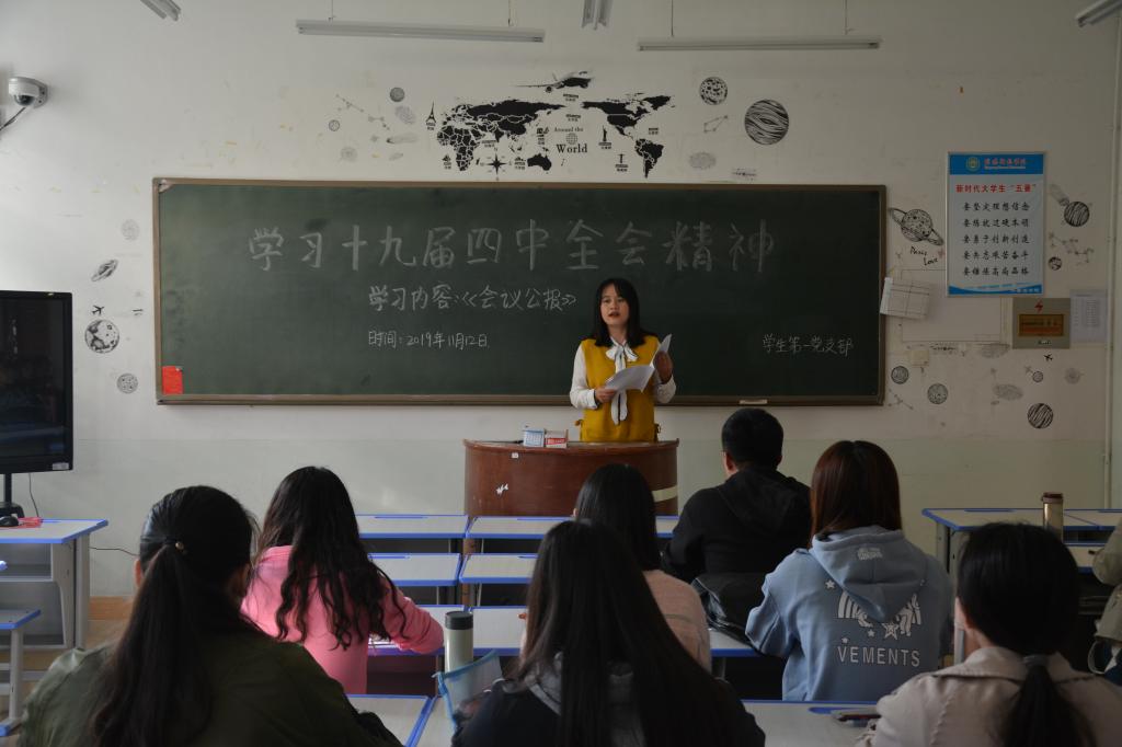 为坚决贯彻落实上级党委部署要求,坚持标准不降、力度不减、工作不松,扎扎实实推进“不忘初心、牢记使命”主题教育,确保取得预期效果,11月12日,beat365亚洲体育官方网站各党支部分别在五楼、六楼会议室及人文楼各教室组织召开支部党员大会,认真学习贯彻党的十九届四中全会精神。