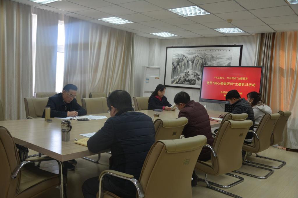 为贯彻落实公司党委关于开展“不忘初心、牢记使命”主题教育的实施方案的部署要求,进一步深入推进“不忘初心、牢记使命”主题教育,引导广大党员牢记初心使命,勇担当敢作为,11月19日下午,外国语公司党委组织各党支部分别开展“初心使命四问”主题党日活动。