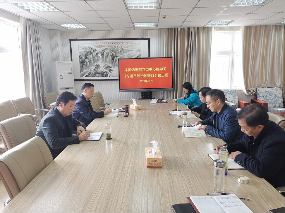 10月26日上午,外国语公司党委中心组召开理论学习会议,专题学习《习近平谈治国理政》第三卷。公司全体党委委员参加会议,会议由公司党委书记周学红主持。