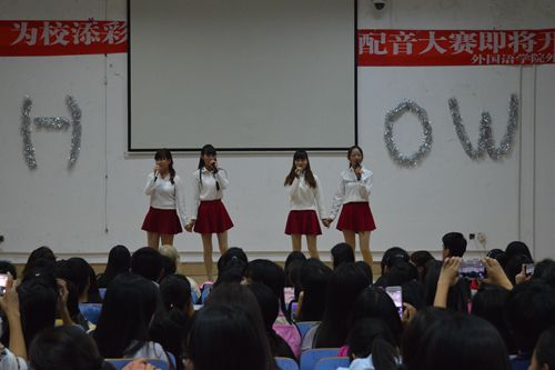 比赛分为作品介绍、影视配音和才艺展示三个环节。配音秀涵盖中、英、日三个类别,为观众带来了一场精彩绝伦的视听盛宴。选手简要介绍作品人物关系与所配角色后,以流畅自然的口语表达、惟妙惟肖的语调模仿,将剧中角色诠释得淋漓尽致。才艺展示节目类型丰富,书法、手语表演、歌曲、舞蹈等精彩纷呈。其中,话剧《夏洛特烦恼》匪夷所思的剧情与演员夸张幽默的表演更是赢得现场雷鸣般的掌声。伴随着动人的背景音乐,手语《从头再来》的表演者凭借着真挚饱满的感情和轻柔优美的手势,深深感染了台下观众。