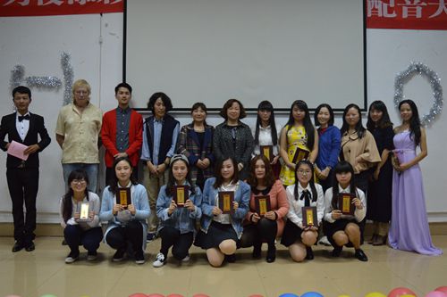 经激烈角逐,《干物妹小埋》《超能陆战队》两部作品获一等奖,《马达加斯加的企鹅》《十万个冷笑话之福禄寿篇》获二等奖,《疯狂原始人》《魔法奇缘》《金牌女王》等作品获三等奖。评委老师为获奖选手颁奖并合影留念。