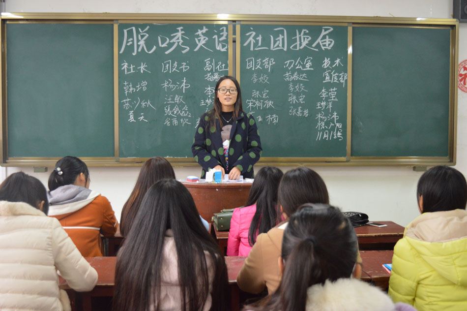 11月18日中午,beat365亚洲体育官方网站英语脱口秀社团在人文楼104教室进行2015-2016学年换届,社长魏晓莉携本社全体成员参与,大会由副社长夏天主持。