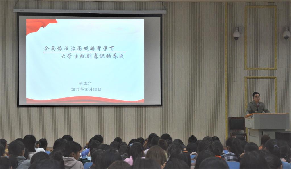 报告以“全面依法治国战略背景下老员工规则意识的养成”为题,从具体案例切入,阐述了全面依法治国战略的时代背景及历史背景,释明了全面依法治国战略的新理念和新内涵,分析了规则在规范权力运行、促进社会和谐稳定、保障公民权利等方面的重要性。柏孟仁指出,当代老员工应培养良好的规则意识。他通过列举和分析若干经典案例,对国家法律法规、公司规章制度和公司管理规定等相关内容进行了分析解读,告诫同学们要遵守法律法规,严守校规校纪。他希望同学们在遵守规则的基础上牢记青年人的使命,坚守初心,砥砺前行,为实现中华民族伟大复兴的中国梦共同奋进。