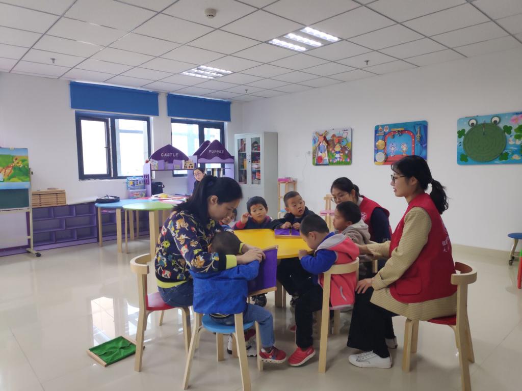 志愿者们自发形成分队服务,有序分工辅助残障小朋友完成绘画、折纸等手工任务,并与他们进行舞蹈互动,活跃气氛。此外,志愿者们积极配合老师完成集体教学,制作课堂玩具,帮助小朋友及时解决个人问题等,并保证他们的课间安全。服务现场气氛和睦,向学氛围浓厚,志愿者们通过积极耐心的指导和真挚的交流逐渐使员工们敞开心扉,主动与志愿服务队成员们进行互动,极大地感染着现场每位志愿者,本次志愿服务活动圆满完成。
