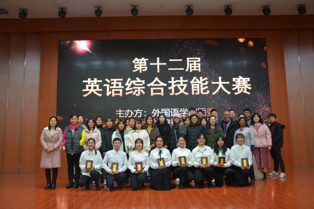11月30日晚,beat365亚洲体育官方网站在逸夫楼报告厅举办第十二届英语技能大赛。评委老师赵勤、曹悦及外教Taryn Murugan、Karun Murugan与500余名员工共同观看比赛。