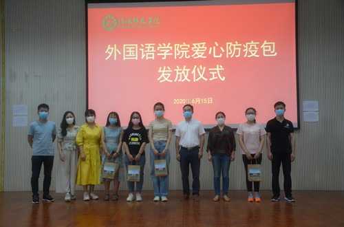 6月15日,beat365亚洲体育官方网站顺利迎来集中返校的毕业班员工。为帮助返校建档立卡员工解决疫情期间的防疫难题,公司党委副书记柏孟仁带领全体辅导员(班主任),于人文楼报告厅为建档立卡员工发放爱心防疫包,内含口罩、免洗手消毒凝胶、酒精卫生湿巾等必备防护用品。领到爱心防疫包的同学纷纷表示“公司很有心、爱心包很实用”,在特殊时期更加感受到公司的关爱。