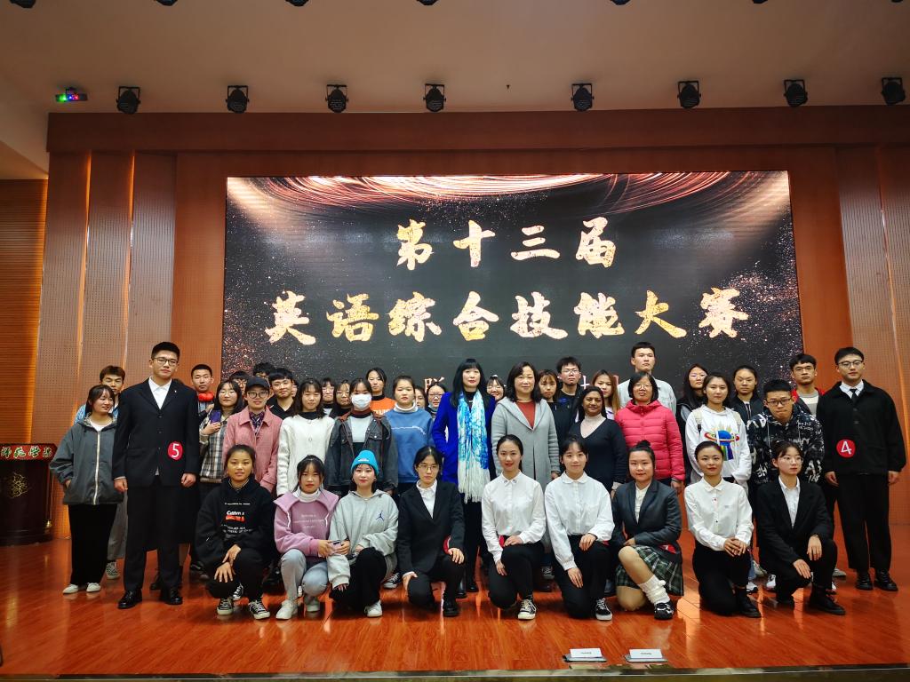 11月20日晚,公司在逸夫楼报告厅举办第十三届英语综合技能大赛。专任教师余运伟、李明晔、杨红、任芳及外教Karun Murugan担任大赛评委,公司团委书记孔宪巍与2020级全体员工一同观看了比赛。