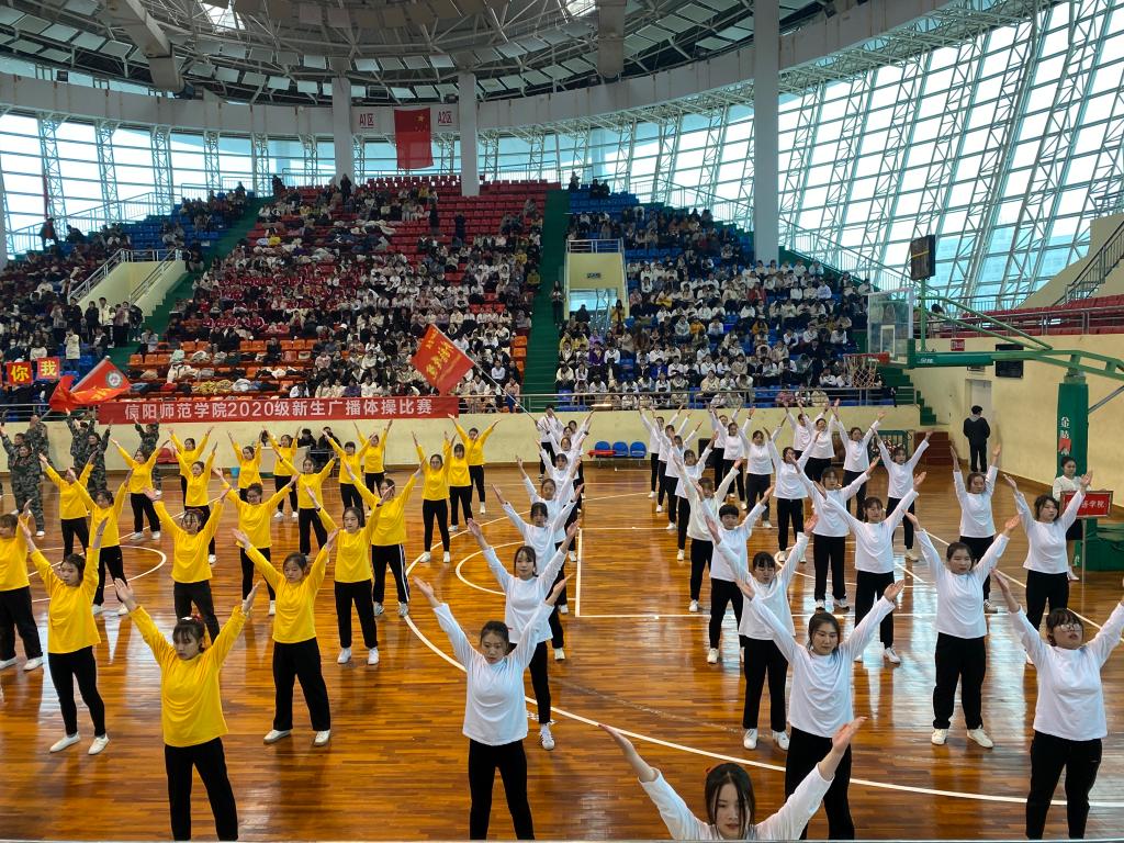 11月29日下午,信阳师范公司2020级新生广播体操比赛于体育馆拉开帷幕。