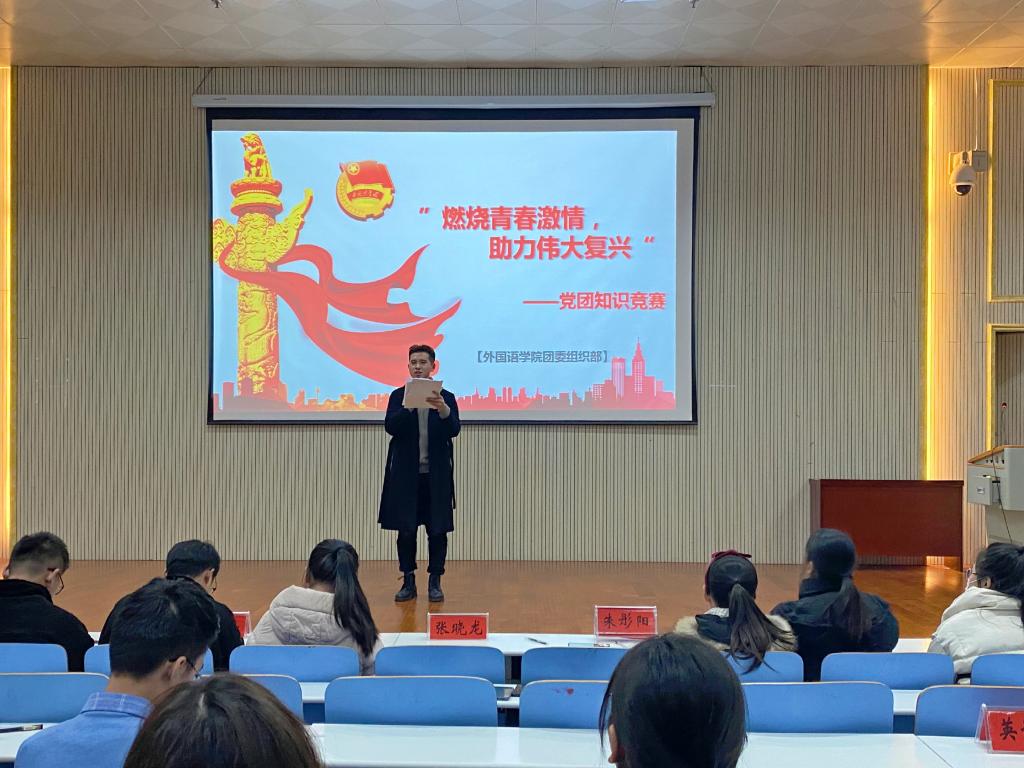 12月15日晚,beat365亚洲体育官方网站在人文楼报告厅举办“燃烧青春激情,助力伟大复兴”党团知识竞赛,2020级全体员工参加活动。