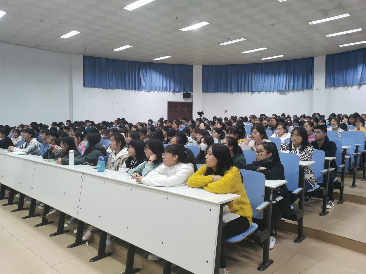 10月18日晚,首批全国乡村优秀青年教师、新县新星小学陈圣春老师在人文楼报告厅为公司2021级新生作入学教育专题报告。院团委书记孔宪巍、部分“省培计划”学员、2021级全体新生参加报告会,报告会由副经理余永锋主持。