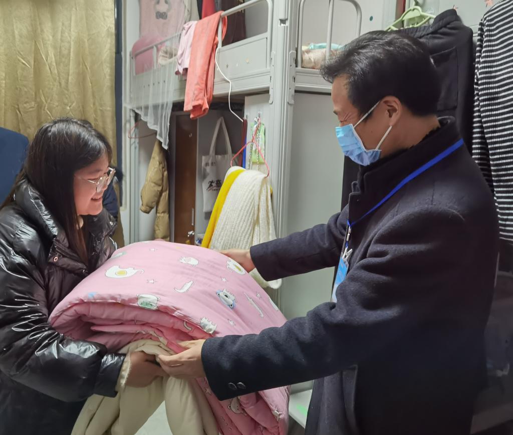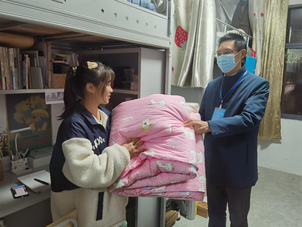 beat365亚洲体育官方网站领导深入宿舍为贫困生发放爱心棉被