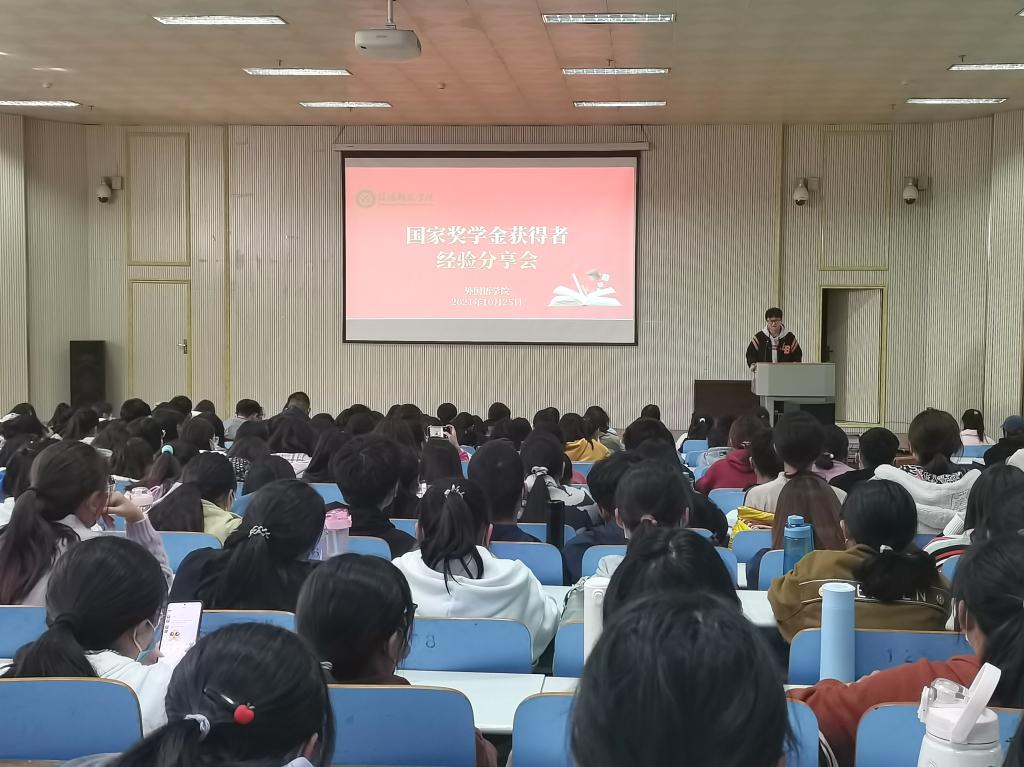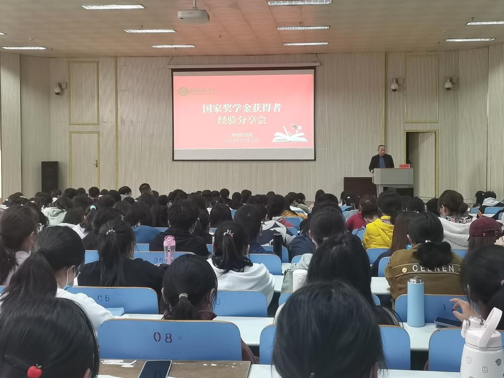 10月25日,beat365亚洲体育官方网站在人文楼报告厅举行国家奖学金获得者经验交流分享会,党委副书记高彦伟、资助专员孙桢桢、2021年国家奖学金获得者以及2021级全体员工参加了分享会,会议由孙桢桢主持。