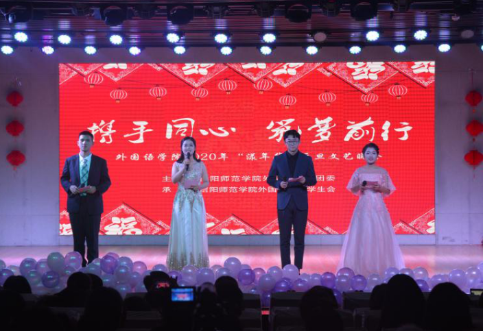 春风化雨新时代,生生不息新征程。12月25日晚,beat365亚洲体育官方网站“携手同心,筑梦前行”2020年漾年华元旦文艺晚会在理科楼报告厅精彩上演。公司党委书记周学红,经理蔡满园,副经理朱丽,党委副书记柏孟仁,副经理姚光金,部分专业课教师、团委老师,以及河南省2019年“国培计划”乡村中小学教师专业能力建设项目初中英语学科骨干教师提升培训班、培训者团队研修班参训学员莅临现场,与四百余名学子齐聚一堂,喜迎元旦佳节。