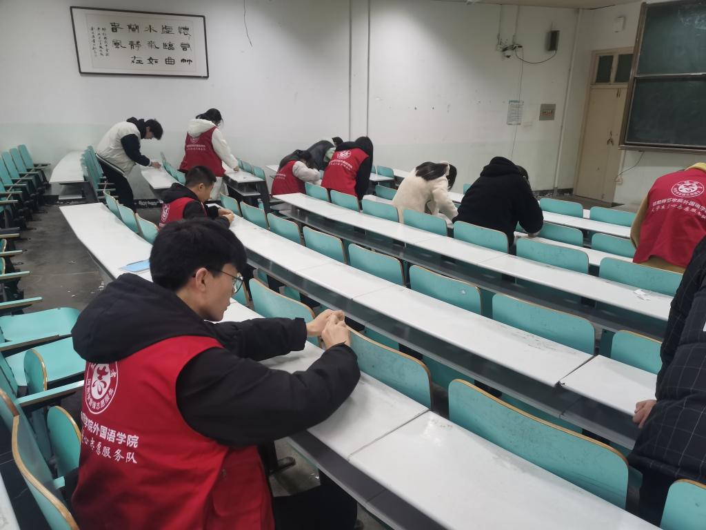 开展文明校园建设月活动。通过组织公司志愿者打扫校园卫生、规范电动车停放、清理人文楼教室桌面纸屑等活动,营造干净整洁的校园环境,在日常生活中将雷锋精神内化于心、外化于行。