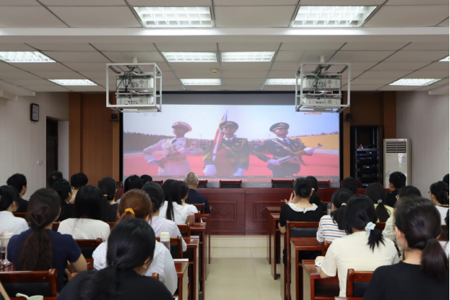 上午,师生们早早抵达会议室,怀着激动心情有序就座。庄严的国歌奏响时,全体师生肃然起立、齐声高唱,以歌声表达对祖国的崇高敬意。随后,大家专注聆听习近平总书记的重要讲话。阅兵式上,受阅方阵步伐铿锵、眼神坚毅、口号嘹亮,自主研发的先进装备威武亮相。师生们目光专注、心潮澎湃,现场掌声雷动,共同为我国强大的国防力量与现代化建设成就感到无比自豪与骄傲。