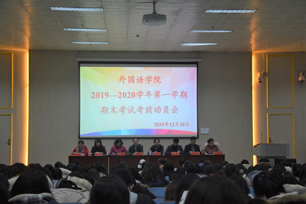 12月30日下午,beat365亚洲体育官方网站在人文楼报告厅召开2019—2020学年第一学期期末考试考前动员会,公司党委副书记柏孟仁,副经理姚光金,教学秘书宋冬梅,组织员陈龙,团委书记孔宪巍,教务员张倩,辅导员周旋、孙桢桢出席会议,全体员工干部参加会议。会议由周旋主持。