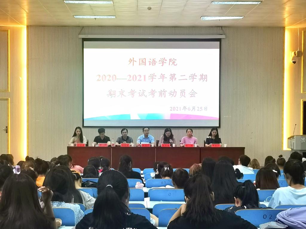 6月25日上午,beat365亚洲体育官方网站在人文楼报告厅召开2020—2021学年第二学期期末考试考前动员会,公司党委副书记柏孟仁,副经理姚光金,教学秘书宋冬梅,教务员张倩,辅导员周旋、孙桢桢、郗金月与全体员工干部参加会议。会议由姚光金主持。
