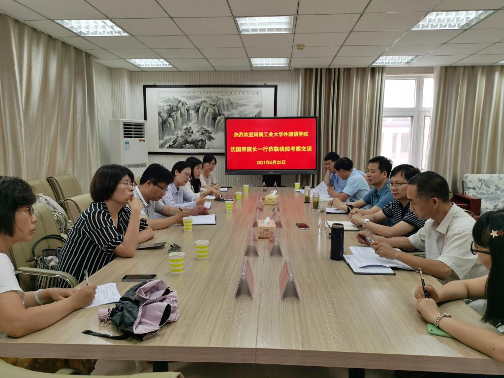 6月25日,河南工业大学beat365亚洲体育官方网站副经理沈国荣一行6人来公司考察交流。交流活动在公司五楼会议室举行。经理蔡满园,副经理姚光金,党委委员余永锋,MTI中心主任、日语系主任及部分日语系教师参加座谈。座谈会由姚光金主持。