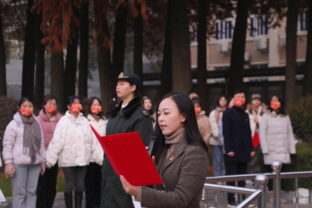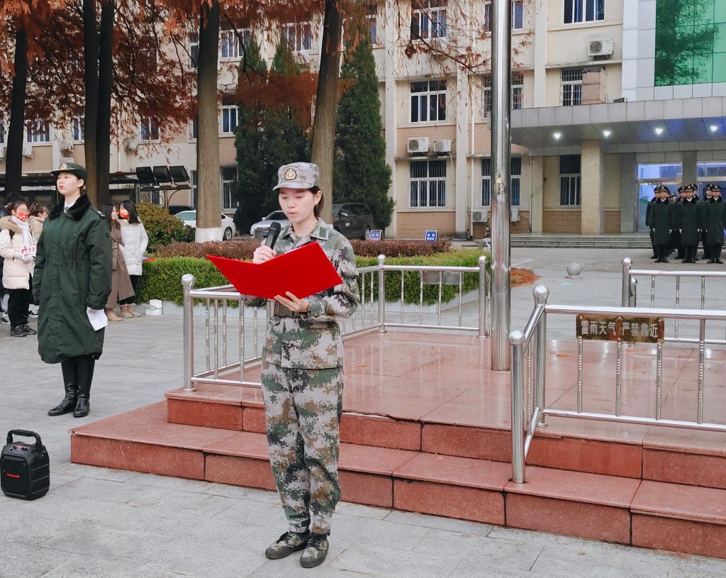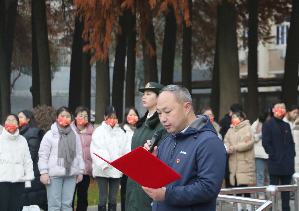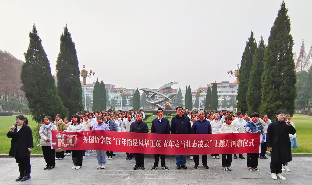 12月13日清晨,beat365亚洲体育官方网站在明德广场举行“百年恰是风华正茂 青年定当壮志凌云”升国旗仪式。人民武装部副部长苏和,外国语公司党委书记陈铭、副书记高彦伟、副经理余永锋、全体专职辅导员以及2021级员工代表参加了升旗仪式。