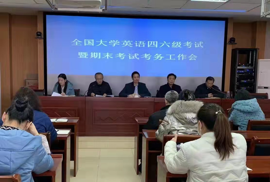 12月14日下午,公司在人文楼607会议室召开本学期全国大学英语四六级考试暨期末考试考务会。