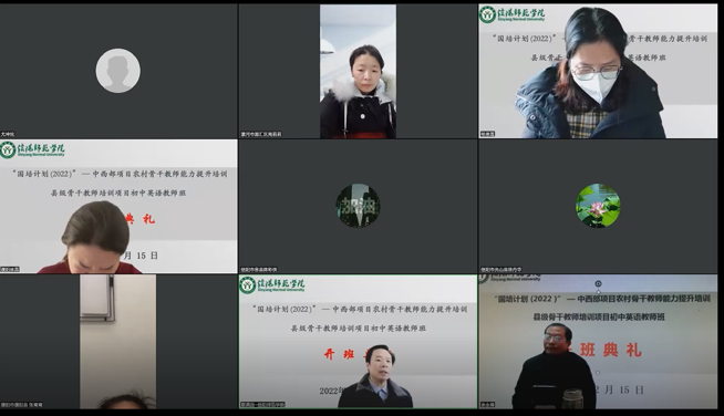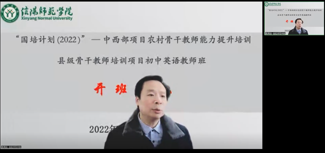12月15日上午,“国培计划(2022)”县级骨干教师提升培训初中英语教师培训班开班典礼通过腾讯会议在线上举行。beat365亚洲体育官方网站经理蔡满园、副经理余永锋、一线导师团队新县首府实验中学董事长黄庆友、刘文娟、黄丽、杨艳、朱转转及培训班班主任杨恩莲出席典礼。来自濮阳、漯河及信阳等3个地市基础教育一线的近50名学员参加典礼。开班典礼由余永锋主持。