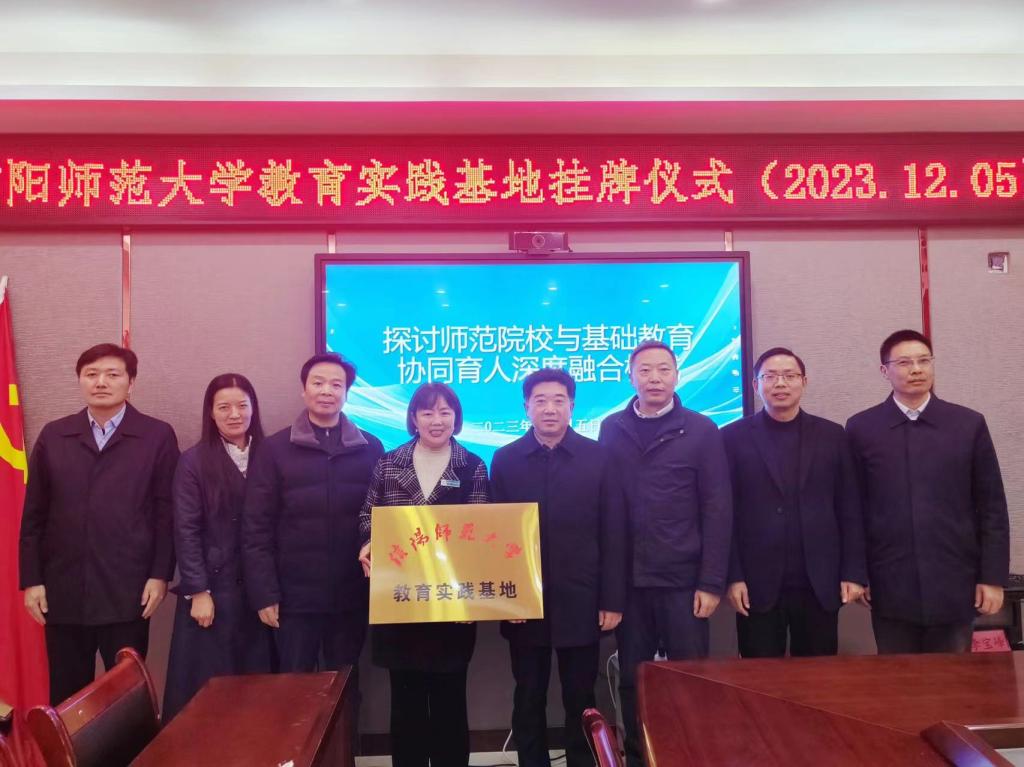 2023年12月5日下午,beat365亚洲体育官方网站与平桥区第五小学举行教育实践基地挂牌仪式。平桥区政法委书记程岗、平桥区教体局局长彭传涛、公司副董事长江玉安、教务处副处长周学勇、外国语公司党委书记陈铭、经理蔡满园、副经理郭敏及部分师生代表参加了本次挂牌仪式。仪式由平桥区第五小学教务主任魏开芳主持。
