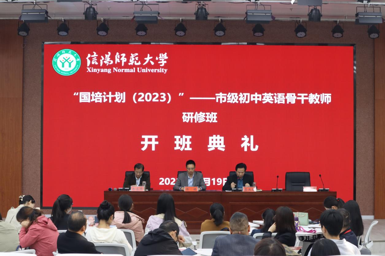 10月20日上午,“国培计划(2023)”市级初中英语骨干教师研修班开班典礼在人文楼报告厅举行。外国语公司党委书记陈铭、经理蔡满园、副经理余永锋,研修班班主任宋冬梅、魏旭出席典礼典礼,来自郑州、许昌、平顶山、漯河、驻马店等地市基础教育一线的50名学员参加典礼,典礼由余永锋主持。