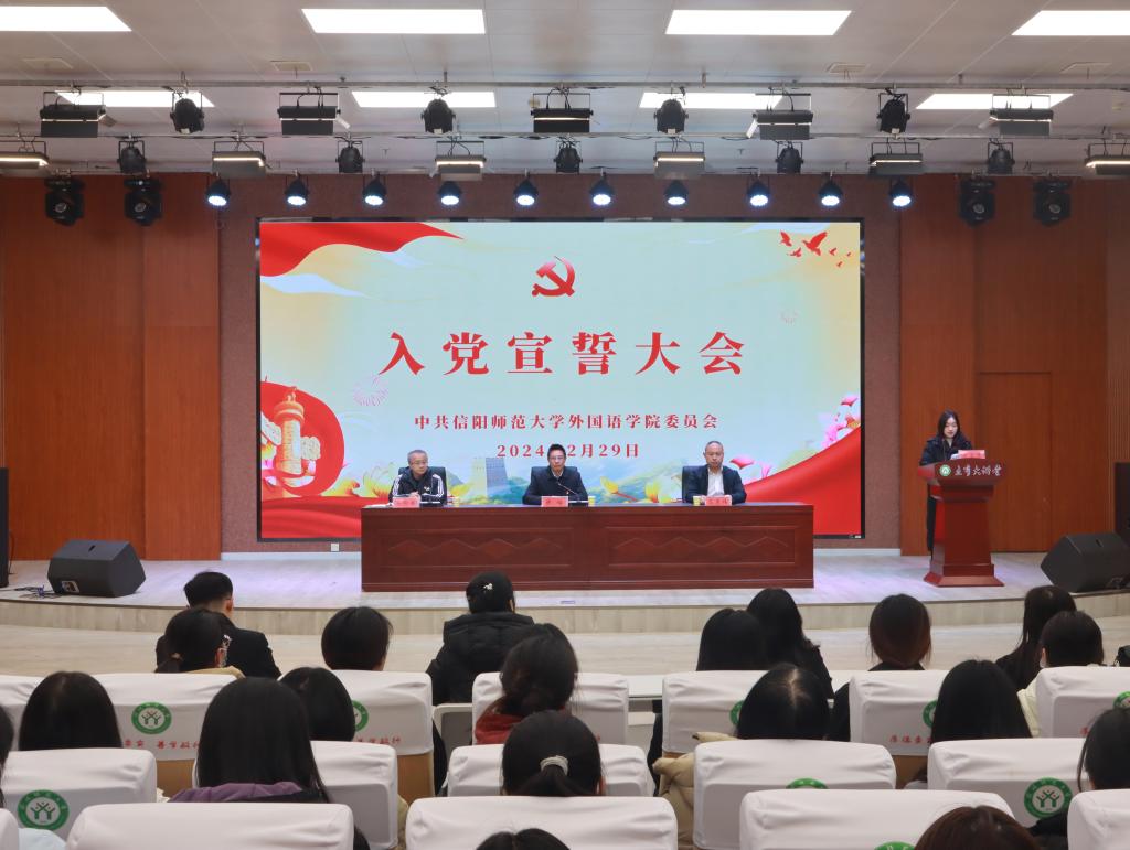 入党宣誓大会在慷慨激昂的《国际歌》中拉开帷幕。高彦伟宣读参加宣誓的新党员名单,孙桢桢带领全体党员庄严宣誓。随后李婧作为新党员代表、璩孟博作为老党员代表先后发言,表示要矢志不渝地以一个共产党人的标准严格要求自己,坚持用党的创新理论武装头脑,时刻保持共产党员的先进性,继承和发扬中国共产党的光荣传统和优良作风,不负时代,不负韶华,让青春在为祖国、为民族、为人民的不懈奋斗中绽放绚丽之花。