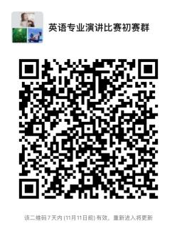 通过微信扫描二维码加入“用英语讲中国故事活动初赛群”,并在“初赛报名在线表格”填写个人基本信息。个人信息在线表格进群以后等到相关老师发布,微信二维码如下。