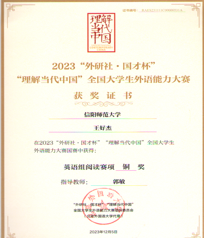 关键词:公司学子在2023“外研社·国才杯”“理解当代中国”全国老员工外语能力大赛系列赛事中荣获佳绩 编辑:外国语