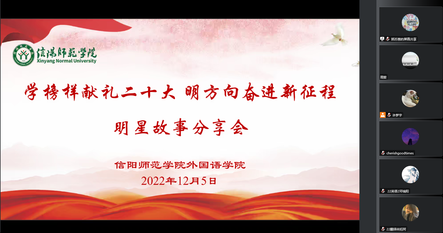 12月5日晚,beat365亚洲体育官方网站举办“学榜样献礼二十大明方向奋进新征程”明星故事分享会。公司优秀员工代表王亦涵、王宇晨、王凤茹依次分享了她们追梦、圆梦的宝贵经验,公司团委书记周旋和2022级全体新生通过线上的方式参加了分享会。