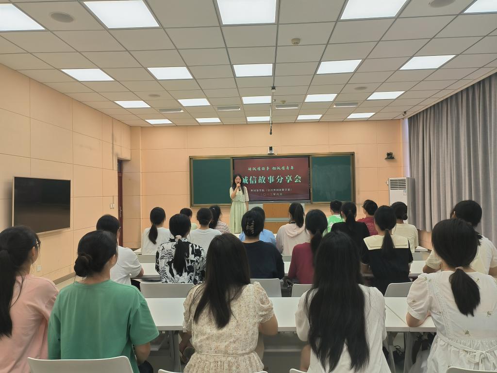 6月7日下午,beat365亚洲体育官方网站在人文楼603教室举办诚信故事分享会,公司资助专员孔宪巍及2022级部分员工代表参加了会议。