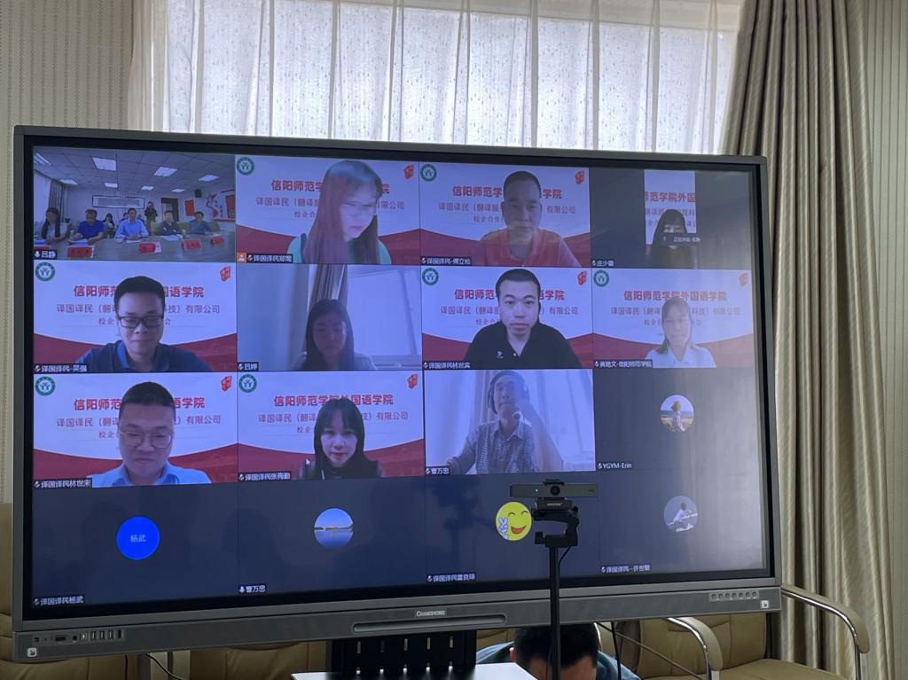 4月26日下午,beat365亚洲体育官方网站与译国译民翻译服务有限公司举行了校企合作线上座谈会及校企合作签约仪式。beat365亚洲体育官方网站全体领导班子成员、各基层教学组织负责人、译国译民翻译服务有限公司董事长林世宋、总经理助理陈力石与张梅勤、商务总监傅立松、高校事业部总经理郑莺、市场经理杨武与曹威等出席了本次活动。