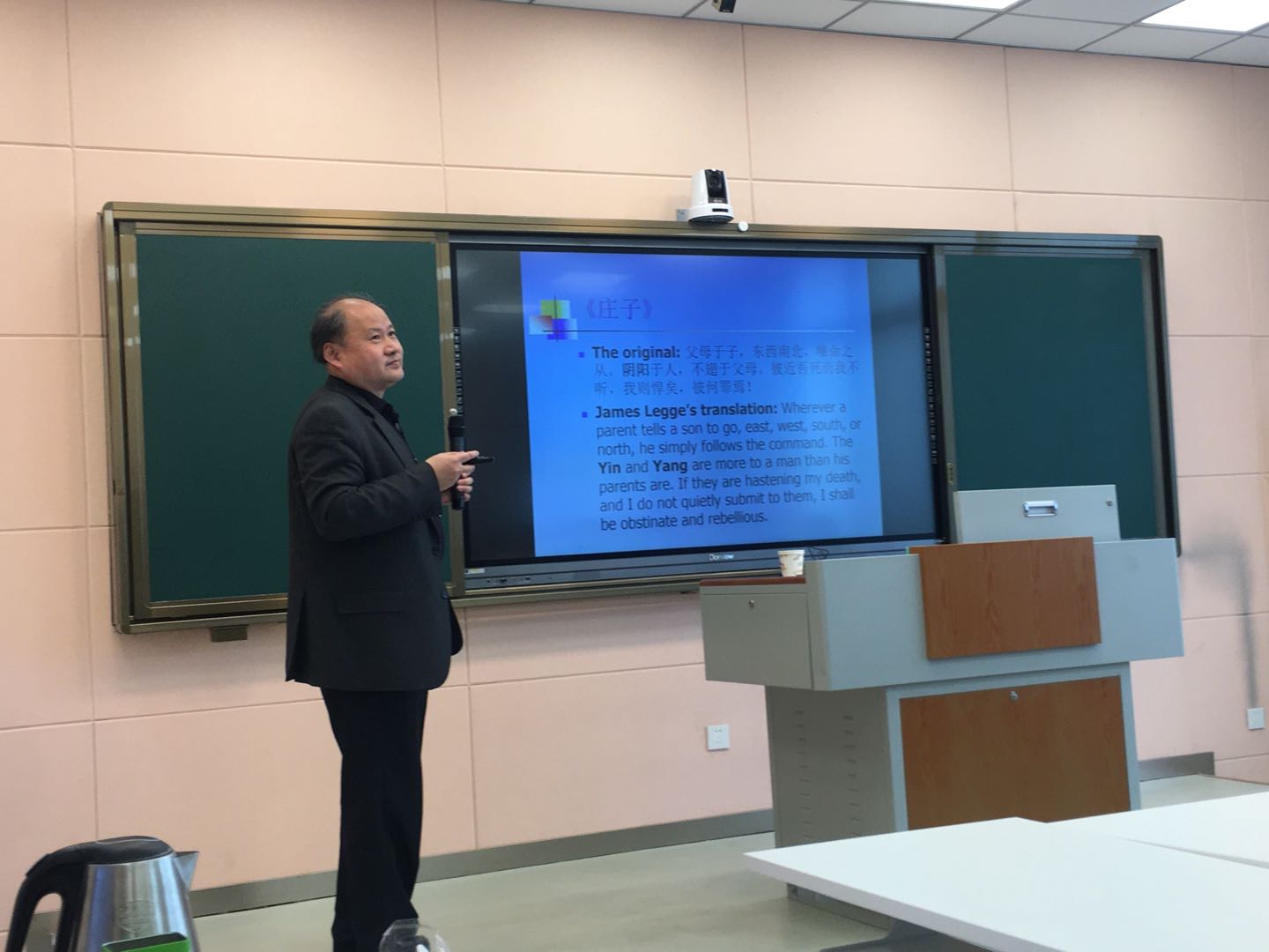 4月26日,应beat365亚洲体育官方网站邀请,上海交通大学beat365亚洲体育官方网站博士生导师刘华文教授在人文楼603教室为公司师生作了题为“翻译与传统文化认知”的学术报告,beat365亚洲体育官方网站全体研究生和部分教师聆听了报告。报告由beat365亚洲体育官方网站蔡满园经理主持。