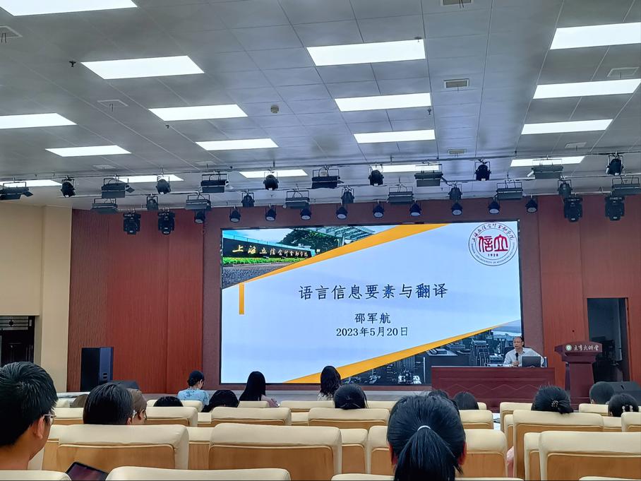 5月20日上午,公司员工、上海立信会计金融公司beat365亚洲体育官方网站邵军航教授在人文楼报告厅为公司师生作了题为《语言信息要素与翻译》的讲座。公司师生60余人共同聆听了讲座。讲座由beat365亚洲体育官方网站副经理章彩云主持。